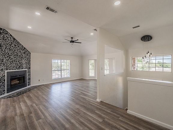 Modern decorated lightingBig landExtended wood patioHuge private backyard oasisNew flooringNew texture and paintInviting natural light