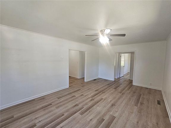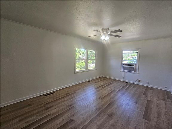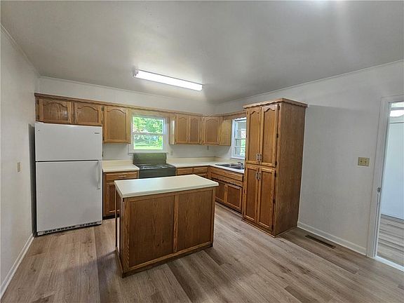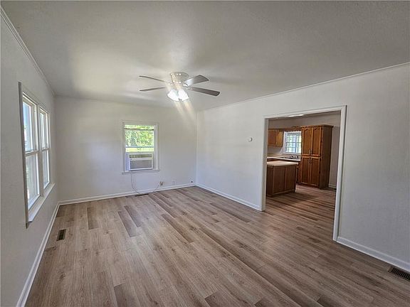 Welcome to this charming 2-bedroom, 1-bathroom home, perfectly move-in ready and situated on a shaded lot. The exterior features durable vinyl siding, ensuring low maintenance and a clean, inviting appearance. Inside, you'll be greeted by a great sized living room and a spacious kitchen and dining combo, complete with an island that’s perfect for meal prep and casual dining. The home is equipped with central heating and window units for air conditioning, ensuring year-round comfort. Recently remodeled, the interior boasts beautiful neutral-colored vinyl planked flooring throughout, creating a modern and cohesive look that is easy to maintain. A standout feature of this home is the bonus room on the back side, which offers a versatile space ideal for a sunroom, where you can relax and enjoy natural light all year round. This delightful home is perfect for anyone seeking a comfortable and stylish living space. Don’t miss out on this wonderful opportunity – schedule a viewing today and see for yourself all that this property has to offer!