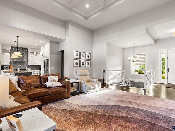 This striking walk-out ranch seamlessly blends luxury, technology, and comfort in one of Sioux Falls' most desirable neighborhoods. From the moment you enter, you're greeted with 14-foot ceilings in the open-concept living room and a flood of natural light that makes the space feel both grand and welcoming.