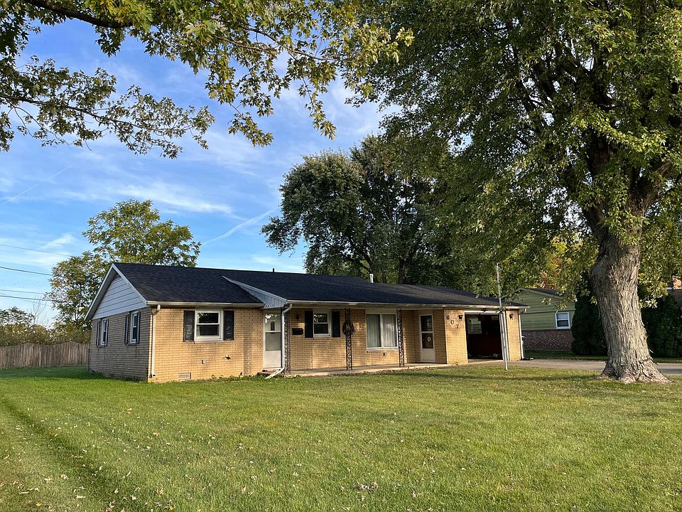One owner Brick Ranch home sitting on .24 acres, includes a two bedroom, 1 bath, 1.5 car attached garage that is (22x15), covered patio. Newer driveway, vinyl windows and roof. Kitchen, living room, dining area in an L Shape. Breakfast bar, all appliances remain with home including the washer, dryer and water softener. BRAND NEW gas furnace, air conditioning, hot water heater, gas range, new vinyl flooring, and new carpet in bedrooms. Back yard fenced, includes a storage shed. 200 AMP service. Possession at closing.
