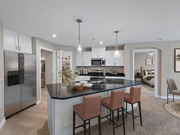 Fischer Homes is showcasing Gallery II condominiums at Twelve Oaks, a Signature Community in Clermont County, Ohio. Homeowners will enjoy low-maintenance living with lawn care and snow removal included. Future planned amenities include a clubhouse with a fitness center, recreation area, outdoor space, and lush garden. This Hayward plan has no steps living and offers an open concept design with an island kitchen with stainless steel appliances, upgraded multi-height cabinetry with soft close hinges, gleaming granite counters, walk-in pantry and all overlooking the family room and dining room combo with walkout access to the covered deck. Private study with double doors. The homeowners retreat includes an en suite with a double bowl vanity, walk-in shower and 3 closets, 2 being walk-in closets. Additional bedroom and hall bath. 1 bay garage