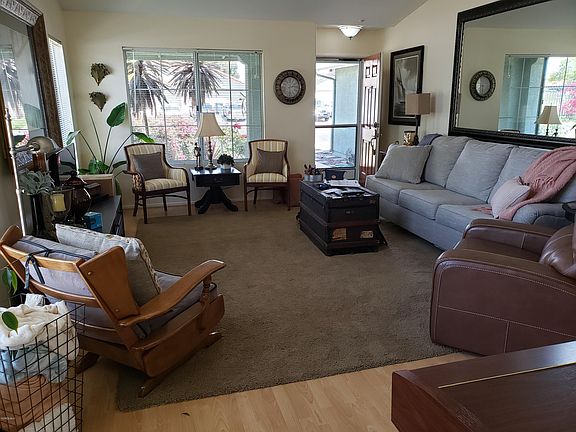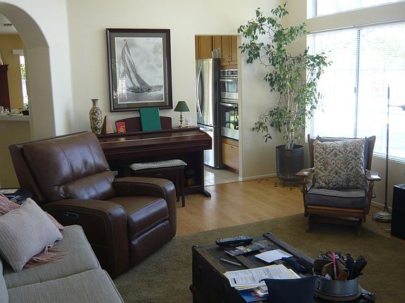 Great Windrose Pointe Corner Location! Neighbors to one side & rear only. Both neighbors are single story allowing much privacy. Home has bright open floorplan with wood-like floors, ceramic tile & new neutral carpet & paint. Kitchen features gas cooktop, oven/microwave combination, dishwasher, trash compactor Oak cabinets with white tile counters & glass tile backsplash. Kitchen has glass slider to rear yard & overlooks family room with fireplace. There are 4 bedrooms with a master suite that has sliding doors to rear yard. Both bathrooms have been upgraded with granite counters and vessel sinks. There is a laundry room with direct access to a 3 car garage. This special, well cared for home also has AC & is located just minutes to beaches, marinas, schools & shopping. Furnished photos are current Tenant's belongings. We have included previous unfurnished photos to provide as much information as possible