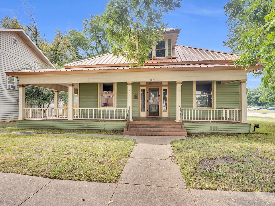 They just don't build them like they used to, and 607 West Brown is built like they used to! Located in the heart of Ennis, just steps from Historic Downtown, there's endless opportunity for this 1945 home. For the business owner, this property offers plenty of conference rooms or meeting space, rooms for private offices, and a full kitchen! For the homeowner, double living areas and a dining room make it the perfect place to host! The wrap around porch offers the perfect spot to relax after a long day!