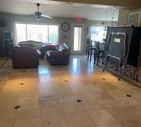 ASSISTED LIVING HOME, license in hand, ready to start. Licensed for 10 residents. Business is active and included. Upgrades; granite tops, travertine and laminate flooring. Fenced pool and spa. Garage was converted and has two bedrooms with side doors exits and half bath (City Permitted). Could be converted back to garage. Fully furnished. No residents at the moment.