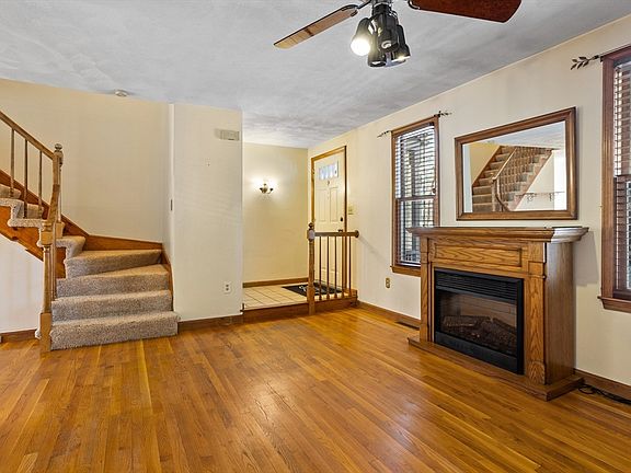 - Features: Flooring - Hardwood, Chair Rail, Slider, Lighting - Overhead