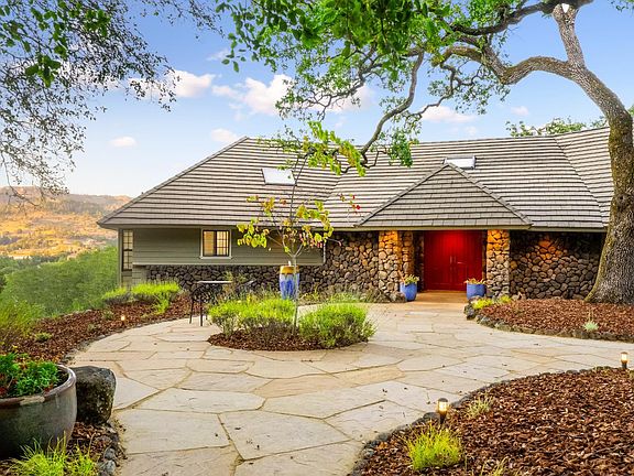 607 Wild Oak sits on Valley Oak Hill in Sonoma Valley's gated Wild Oak community, offering panoramic views of Hood Mountain, Sugarloaf Ridge, and surrounding vineyards. The 4,449 sq ft estate includes a 3-bedroom, 3.5-bath main home and a detached 1-bedroom guest house with fireplace, kitchenette, and private patio. The remodeled kitchen features premium appliances, custom cabinetry, and French doors that open to an expansive tiled veranda for seamless indoor-outdoor living. The primary suite includes dual walk-in closets, a soaking tub, and mountain views, while secondary suites ensure comfort and privacy. Additional highlights include a 3-car garage, generator, and raised garden beds. Minutes from wineries and dining, and just over an hour to San Francisco, this is a rare Wine Country retreat in one of Sonoma Valley's most sought-after enclaves.