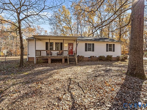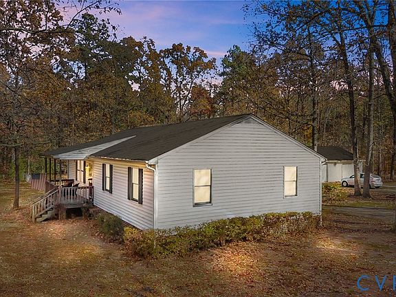 Beautiful, Charming Ranch home on 2.46 private acres in King William! This spacious ranch-style home offers comfort, privacy, and modern convenience, with Breezeline Broadband fiber optic internet. The open great room feature a dining area and a gas hooked -up free-standing fireplace and ceiling fan. The Kitchen offers Quarts Countertops, Quarts island with extra storage and bar stoop seating, and durable vinyl flooring, dishwasher, above the stove micro-wave and ceiling fan. Extra- large primary bedroom with carpet, ceiling fan, spacious closet and plenty of natural light. Full Bathroom includes walk-in shower and separate jetted Jacuzzi Tub. Additional highlights include a separate large utility room with washer/dryer hook-up and cabinets, a back covered deck with ceiling fan and string- lighting creating a cozy space for relaxing or entertaining. Paved parking/ driveway area and an oversized detached 2.5 car garage w/ Window A/C. This well-maintained property features a peaceful flag shaped-lot, the driveway is yours and yard features a partially fenced in area. Schedule your showing today. Spend the holiday in Your New HOME.