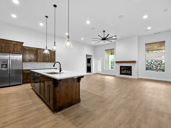 Relax and Enjoy the Private Yard and all the Luxurious Upgrades in this Nearly New Home featuring 2 En Suites, a Large Garage with Epoxy floors. Perfect for a Small RV, Boat or Toys, with 220 outlet. RV Garage is just over 37ft long. Upgrades include Butlers Pantry, Soft Close Cabinets, Upgraded Counter tops, Swim Spa, Electric Blinds, Custom Gate, Tinted windows, Ceiling Fans, Outdoor Outlets, Engineered hard wood,neutral colors, Auto Lights and a sink in the laundry plus RV Parking on the side of the home. All this and a Gorgeous Private Yard.
