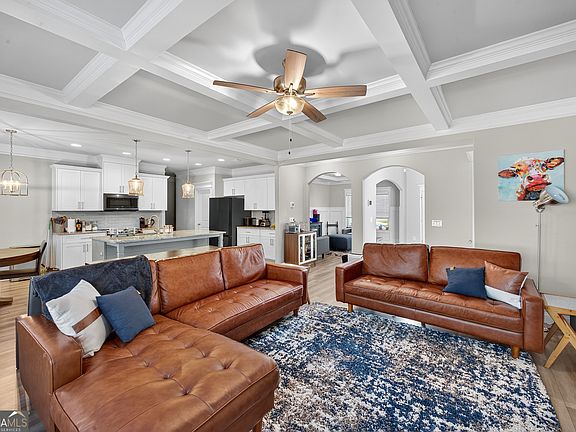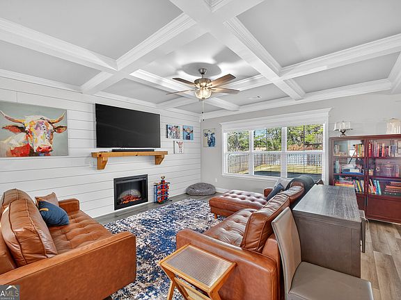 tep into a home designed to elevate everyday living. This 4-bedroom, 3-bath beauty delivers an open floor plan that seamlessly connects the main living spaces, all enhanced by durable LVP flooring. The kitchen is both stylish and functional with granite countertops, a tiled backsplash, and all appliances remaining for added value. The great room features a stunning shiplap accent wall surrounding the fireplace, setting the tone for warm gatherings. The oversized primary suite offers a true retreat with a generous sitting area and direct access to a huge walk-in closet located just off the spa-like bathroom. Enjoy dual vanities, a large tiled shower, and a relaxing garden tub. Secondary bedrooms are impressively spacious, offering plenty of flexibility. Outside, the fenced backyard becomes an extension of your living space with a covered patio and cozy outdoor fireplace that's perfect for year-round enjoyment. With a charming hardie board exterior and a large front porch, this home is ready to welcome you in.