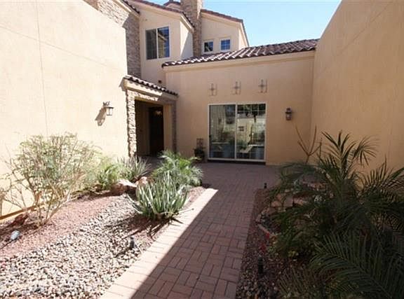 GATED COMMUNITY!! Large Master Suite with Private Balcony-Elec. fire pl., granite countertops, SS upgraded appliances, huge walk-in- master closet, 2 bedrooms downstairs. Travertine tile, Landscaped courtyard,, HOA Paid by Owner- POOL- Clubhouse- Great Views. $1900.00 per month.