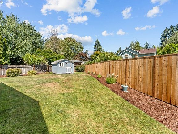 Charming Hillsboro Ranch Home nestled in the desirable Blueberry Park subdivision. This beautifully maintained three-bedroom, two-bathroom residence offers a spacious family room with a cozy gas fireplace—perfect for relaxing evenings. Engineered Hardwood floors throughout the entry, living room, dining room, kitchen and family room. The kitchen was thoughtfully updated in 2024 including quartz countertops, and the home features fresh exterior paint in 2022, new roof and gutters 2014, new water line 2021, new siding 2022, and a new HVAC system installed in 2021 (AC 2003), ensuring comfort year-round. Situated on a pristine, fenced lot at the end of a quiet cul-de-sac, the property boasts mature landscaping, space for gardening, room for chickens, and plenty of areas for outdoor entertaining. A handy backyard shed adds extra storage and functionality. Lot size 7841SF. Driveway large enough to store boat or RV possibly. Lots of storage in the double garage! Don’t miss your chance to own this delightful home before it’s gone! [Home Energy Score = 7. HES Report at https://rpt.greenbuildingregistry.com/hes/OR10239469]