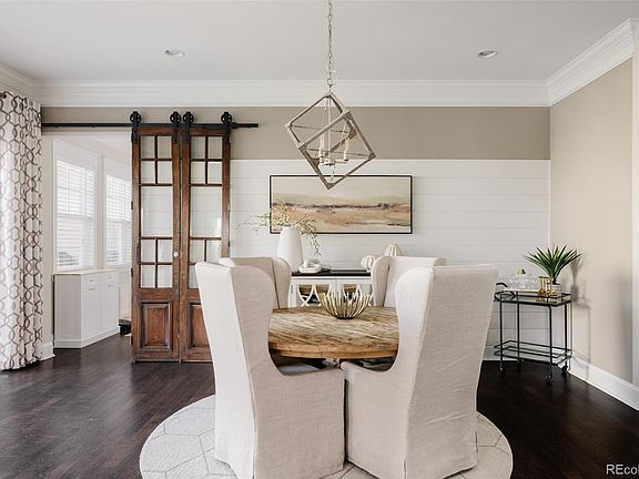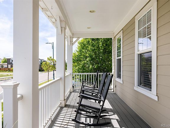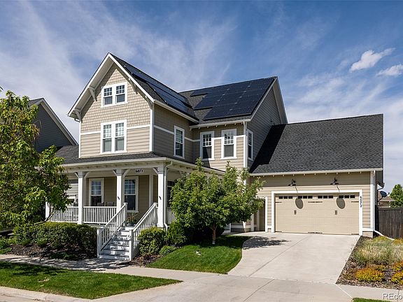JUST IN TIME FOR SUMMER! A classic Parkwood home, inspired by those timeless New England seaside resorts, has just crested on to the market. And like that chillaxin’ coastal holiday you’re dreaming of, this home, while enjoying easy commutes to Anschutz, DIA and Downtown, is settled on a QUIET POCKET PARK where neighbors build community by connecting on generously-sized and social ‘sit and sip’ front porches, gathering to toss the ball to Rover, or maybe just watching the kids play a game of pirate together! Awash in a neutral beachy color palette, the home captures that Cape Cod aesthetic with its dormered roof line and decorative corbels, the 9 over 1 detailed windowpanes you don’t see everyday, and shingled siding embellishments. Bright and breezy, the open floor plan connects a large grassy yard and a natty carefree deck by way of big glass doors. The kitchen with its really lovely fawn color cabinets, herringbone backsplash, and subtly veined quartz countertops, has Jenn-Air appliances and a walk-in pantry big enough for a coffee station and even an herb garden! It joins the sitting room anchored with a gas fireplace and the dining room with its shiplap wall accents and weathered reclaimed doors hung to close off the MUDROOM with its custom built-ins. And if that wide open main floor isn’t enough, you’ll find the basement a player’s dream…yes, we’re talking about polished concrete floors and all the room for ping pong, foosball, and movie night…all at once! Discerning buyers will love the deep crown molding, the tray ceiling and elevated tile in the primary suite, and the transom window topped French doors offering the DEDICATED OFFICE access to that front porch. ‘Practical you’ will be thrilled with the FULLY OWNED SOLAR PANELS, the 3 CAR TANDEM GARAGE with extra service doors, and perhaps the most SUPERBLY FINISHED UPSTAIRS LAUNDRY tricked out with a clever folding table and a DOG WASHING STATION. Behold the art of elevated home making!