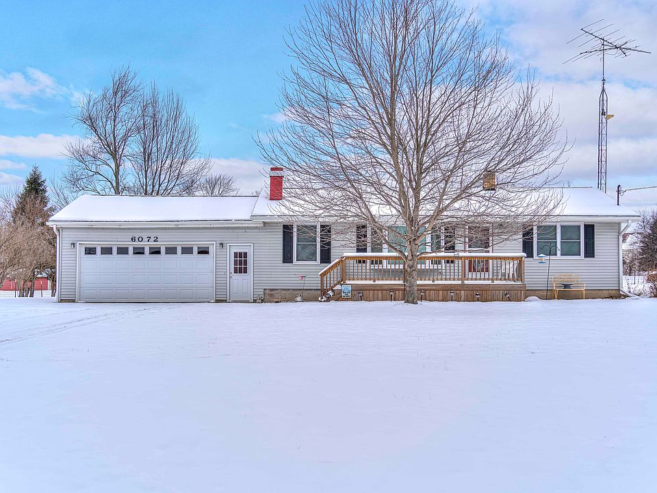 Pristine Ranch Home in Northwest Schools offering a fenced backyard an attached 2.5 car garage and a 4 car detached pole barn/garage. You will enter home from large welcoming deck w/hardwood floors throughout, a large Living Room w/wood-burning fireplace, opens to dining room w/slider to patio overlooking backyard. Kitchen w/pantry cupboards w/pullout shelves. 2 bedrooms on main level, full bath w/walk-in shower - 2nd bedroom has a private 1/2 bath and is currently being used as laundry/office. Full basement with Family Room, a non-conforming 3rd bedroom w/ closet used as a craft room (no egress window). Utility Room w/laundry hook-up and storage space. Newer Water Heater, Water Softener & Furnace and Newer Windows throughout. Central Air. This home has been so well cared for.