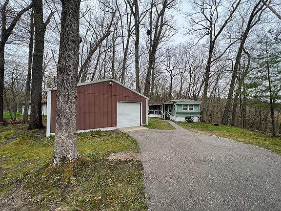 Very nice getaway or year around home with access to Croton Pond and 1320 acres of all sports water. Covered deck and another open deck on the back of the home, perfect for your morning coffee! Master bedroom overlooks nature, living room offers a slider to the deck! Updated windows, exterior doors and storms doors! Natural gas services this home and the gas grill on the covered deck is hooked up to it, which stays. Ample cupboards and counter space all in great condition for this 1973 top-of-the-line Holly Park Home. Great shaded yard, nicely paved driveway and the 24x24 pole barn style garage. All resting in the Kirkhof Development just up from the American Legion on a quiet cul-de-sac street. Watch the 4th of July fireworks from this fully furnished getaway each and every year!