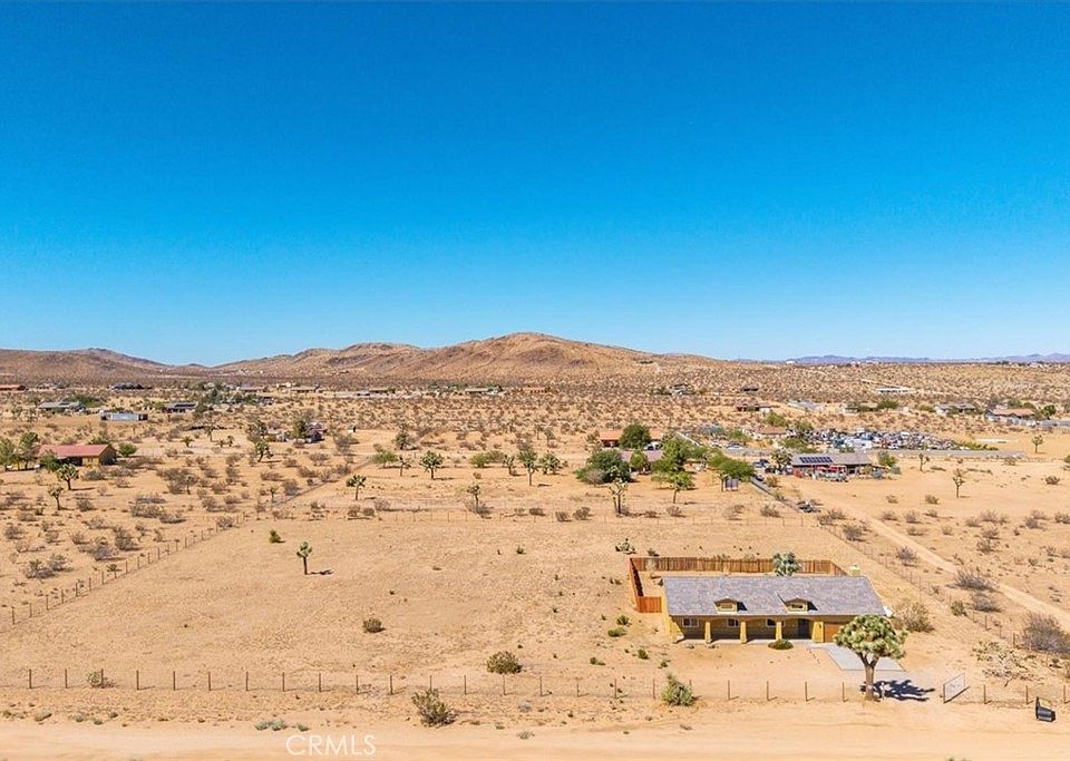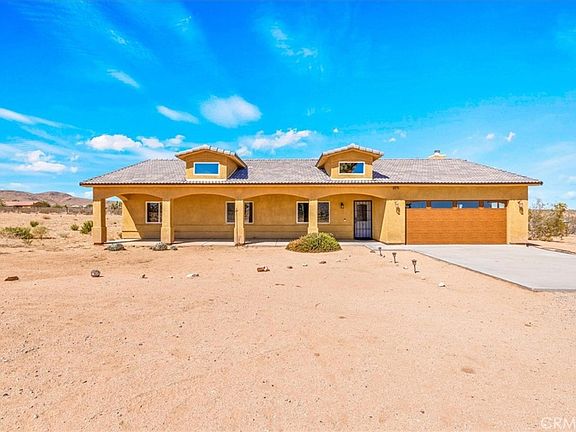 Welcome to your beautiful ranch-style home in peaceful North Joshua Tree! Sitting on 2.5 acres with dormer windows, arches, and sweeping panoramic desert and mountain views, this 3 bedroom, 2 bathroom home offers both charm and modern comfort with no visual power lines to impede the views