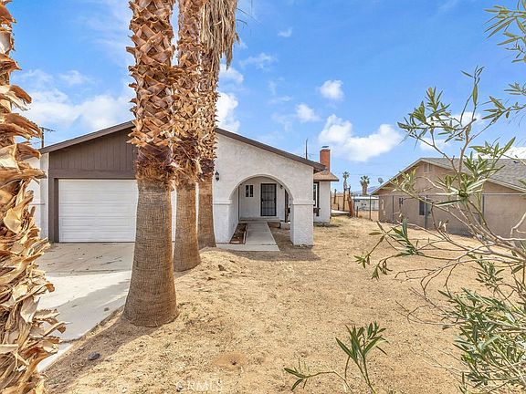 This home is equipped with leased solar and is ideally located near the 29 Palms Marine Base, Tortoise Rock Casino, and the east entrance to Joshua Tree National Park. With thoughtful upgrades throughout and beautiful natural touches like the towering palm-lined driveway, this home is a must-see desert retreat.