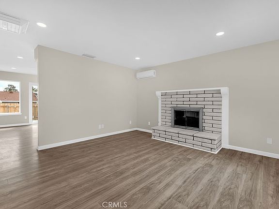The home offers both a swamp cooler and mini-split HVAC units in every room, including the living room, ensuring year-round comfort. The spacious living area features a cozy wood-burning fireplace. The kitchen has been completely updated with white shaker cabinets, butcher block countertops, a modern tile backsplash, recessed LED lighting, and brand-new stainless-steel appliances including a gas oven with vent hood, dishwasher, and refrigerator.