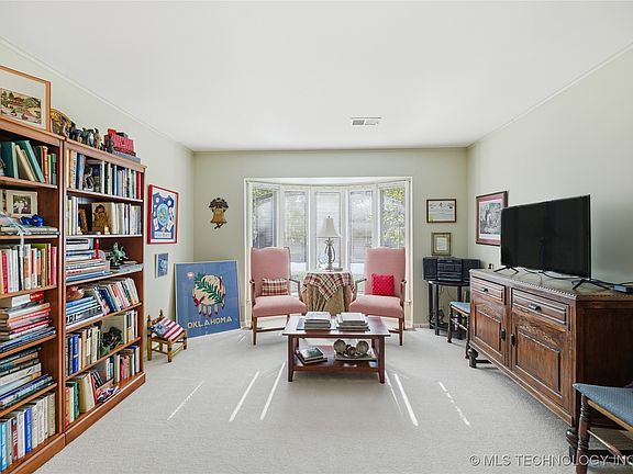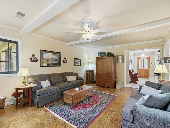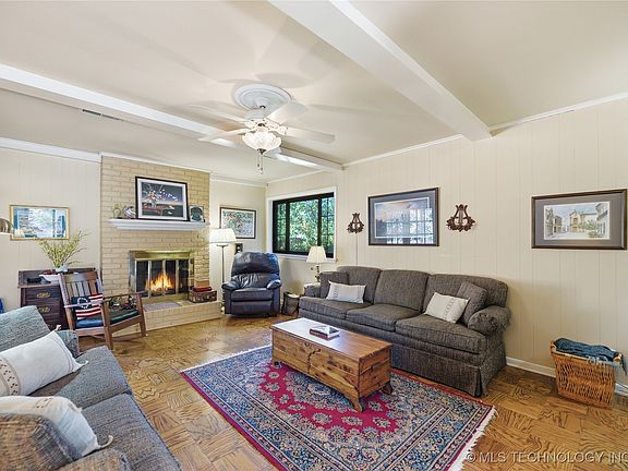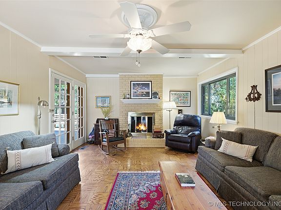 Charming single-story home near La Fortune Park with timeless character and endless potential. A spacious den or office welcomes you at the front with French doors, a bay window, and soft natural light. Wood floors run through all three bedrooms, and the family room showcases parquet flooring and a painted masonry fireplace with gas logs. Enjoy a large laundry room with built-ins, plus a primary suite with a walk-in closet and makeup vanity. Outside, mature trees shade the generous yard, and an outbuilding perfect with electricity for a she-shed, mancave, or whatever you can dream up! New roof in process. Nearby St. Francis Hospital, Warren Place, Warren Medical Center, Woodland Hills Mall.