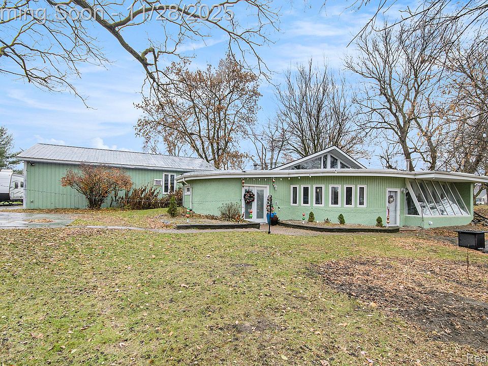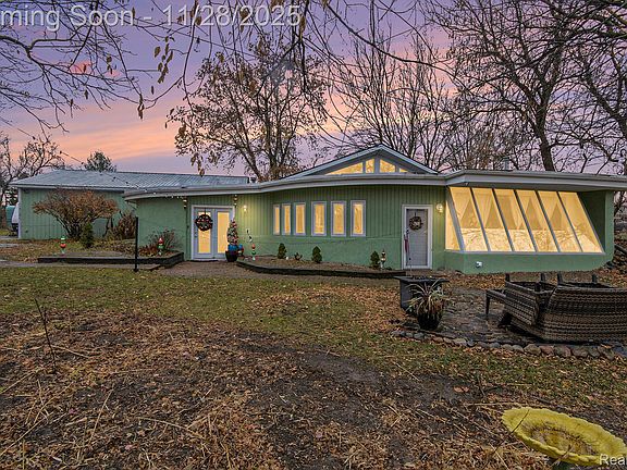 ~~OPEN HOUSE SATURDAY NOVEMBER 29 11 AM-1 PM~~This contemporary ranch is perfectly located in heart of South Lyon on a huge lot that boasts phenomenal curb appeal and brand new driveway. Enter this naturally sunlit home through the spacious laundry/mud room and then step into the open floor plan. The unique kitchen features an abundance of cabinets, a wall of windows, newer appliances, and tile floors. The gorgeous living room is the epitome of comfort with built in bookshelves and an atrium. The ranch boasts a spacious primary bedroom, secondary bedroom and a bathroom. Enjoy your evenings on the slate patio sitting by a warm fire pit. There is a 2 car side entry garage/pole barn with an office space/gym and urinal. Recent updates include: new shingle roof, fresh exterior paint, air conditioning, furnace, tankless hot water, newer windows, new carpet, new concrete driveway, the list goes on. Move in just in time to enjoy all of the amenities and events South Lyon has to offer. Schedule your showing today!!