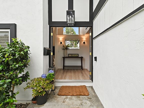 Beautifully updated 5-bedroom, 3-bathroom home in University City with 2,233 square feet of light-filled living space. Recent renovations include luxury vinyl plank flooring throughout; upgraded bathrooms with new tile and vanities; and a modern kitchen with coffee station, new stainless steel appliances, and natural stone counters. Smart home features include Nest thermostat; keyless entry; and Ring cameras, lighting, and doorbell. The home's entry includes a landscaped, private courtyard with front doors opening into a vaulted living room with lots of natural light. Four bedrooms are located upstairs including primary with ensuite bathroom and private balcony. The fifth, downstairs bedroom can easily serve as an office or den. The backyard is built for entertaining, with a gas-heated pool, outdoor shower, elevated terrace, and variety of mature fruit trees. Just under 10 minutes from La Jolla Shores and UTC Mall, this home is centrally located in a peaceful and well-loved family neighborhood. Close to Standley Recreation Center and other neighborhood parks, it is just a short walk to Curie Elementary. Its close proximity to UCSD make the neighborhood a popular location for students and faculty as well. Additional features include solar panels and Tesla charger. Weekly pool maintenance included. Renter is responsible for utilities. No smoking. Application required for viewing.