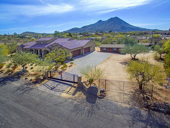 This is the home you've been searching for. ! A truly unique property in the heart of Town. A spectacular home, only 4 years new, with all the custom finishes you would expect to see in a home of this caliber. A thoughtfully appointed kitchen with 48'' SS commercial range, hardwood floors, stacked stone fireplace, fabulous master bath with free standing tub and HUGE front & rear patios for enjoying our wonderful weather. Your clients will love the detached 5th car garage with room for a workshop & the separate artist/hobby studio. Room for your RV and NO H.O.A.! Gated entry. Within walking distance to Restaurants, Bars, Art Galleries & all that Cave Creek has to offer but far enough away to enjoy the views & wildlife! Situated on 1.3 acres.