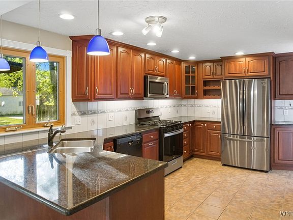 Welcome to your new home in the heart of Clarence Center! This property offers the perfect mix of comfort, functionality & location making it an ideal choice for families. The updated kitchen features Cherry cabinets, granite counters and a center island as well as an eat-in kitchen & pantry! The Living Room features a cozy stone gas fireplace, built-in bookcases and a large window flooding the space with natural light. The flexible layout offers 4 bedrooms or (3+ a dedicated office), 2 on 2nd floor and 2 on 1st floor. There are 2 full baths with the 1st floor featuring a whirlpool tub & double vanity. The upstairs bath has an oversized shower, new vanity and flooring. The master features a large, light filled room with walk-in closet. The 2nd bedroom has an over sided closet while the 3rd includes dual closets. The basement is partially finished providing additional living space if desired. The attached garage has heat & the large backyard has a deck, outdoor grilling area, shed with heat & electric, making this a great space for kids to play & families to gather. The location is just steps away from Peanut Line, Big Sings, Restaurants & shops. A perfect home to raise a family! Showings start Wednesday, 9/17/2025 at 9am. Offers will be reviewed on wed, 10/8 at 12 pm.