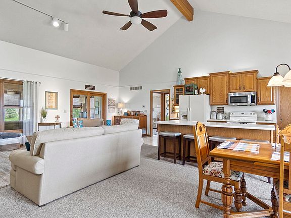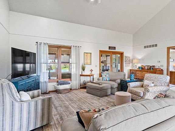 Discover your dream property in Northern Wells, just minutes from Norwell High School! This immaculate ranch home sits on 4.99 +/- acres with a stock pond and beach area. Boasting over 3,000 sq. ft., the main level offers open-concept living with a spacious kitchen, living room, and dining area. The split bedroom floor plan features two bedrooms and a full bath, plus a primary bedroom with an en-suite bath and walk-in closet. A three-season room overlooks the pond. The lower level includes a full kitchen, a large family room, a bedroom and a bonus area. Outside, find a 36' x 48' pole building with electricity and an RV hookup. Updates include new carpet, fresh paint, and a new geothermal heating system (2 years old). This home offers the best in country living - Schedule your tour today!