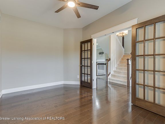Cozy fireplacePrivate officeFinished lower levelUpper-level primary suiteWalk-in closetDouble vanitiesSoaking tub