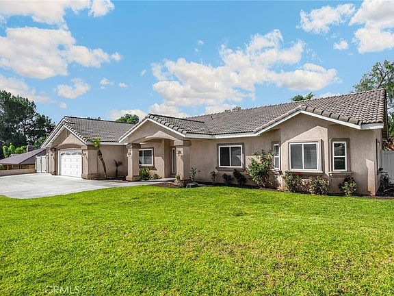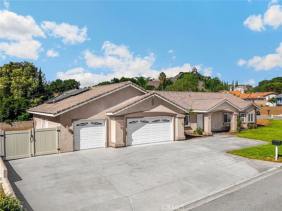 Located on a spacious corner lot in the desirable Jurupa Hills Country Club neighborhood, this Newer, beautifully maintained single-story home, built in 2003, offers the perfect blend of comfort, efficiency, and functionality. Featuring 4 bedrooms and 3 full baths—including Two Primary Suites on opposite sides of the home—it’s ideal for multi-generational living or hosting guests. Enjoy a large living room with a cozy fireplace and a formal dining room, perfect for entertaining. The kitchen boasts granite counters, a breakfast bar, and ample cabinet space. Brand New Carpet throughout enhances the home's fresh, move-in-ready appeal, while Owned Solar Panels provide long-term energy savings and increased efficiency. The main suite includes a walk-in closet, dual vanities, soaking tub, and a separate shower. Additional highlights include an inside laundry room, 3-car garage, large driveway, and RV parking.