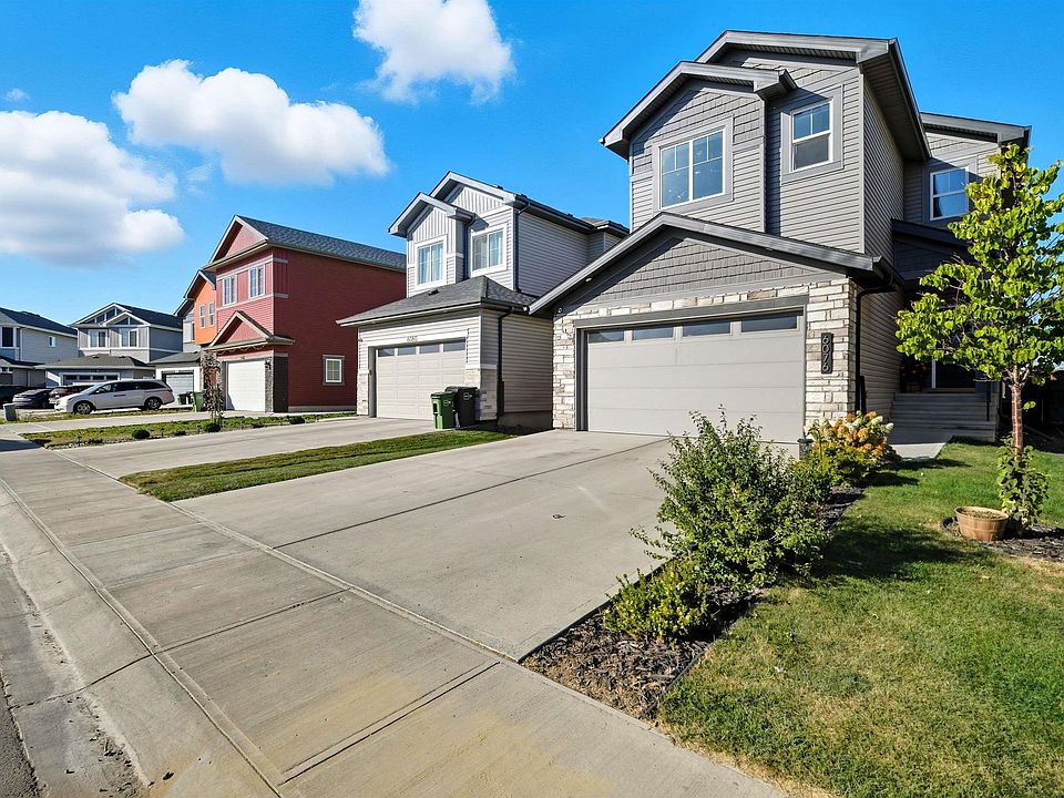 Built in 2020, this gorgeous modern two-storey combines style and comfort. The grey exterior with stone columns and landscaped yard complete with hydrangeas sets the tone. Inside, 9’ ceilings, stunning luxury vinyl plank flooring, quartz counters throughout, white finishes with sleek black hardware all create a stunning, timeless look. The gourmet kitchen offers a massive wood-toned island, stainless appliances, dining area, and walk-through pantry, flowing into the living room with a feature floor to ceiling tiled fireplace. A soaring open-to-below entry and wood railings add further charm. Upstairs are three bedrooms plus a bonus room over the garage. The primary suite has a walk-in closet, stand-alone tub, glass shower, and double vanity. Outside, enjoy sunsets and wildlife with no back neighbours, plus a deck with gas line for BBQs. The basement awaits your touch with electrical in place. Complete with air conditioning, HRV system, custom window coverings and double attached garage.