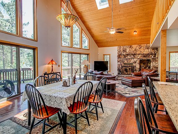 Corner lot backing to open space with Red Rock formations and towering pine trees. Very open and bright floor plan. Private retreat like setting. Great location to Perry Park Country Club. Not far from Castle Rock for shopping, medical and dining. Paved roads with public water and sewer. Enjoy natural gas hot water heat (good for zone heating, skin, hardwood floors and clean air). Newer hardwood flooring and appliances. Huge master retreat is on its own floor with master bath, large walk-in closet and loft. Complete interior was freshly painted. Lots of outdoor decking and fenced area for pets. Oversized two car garage and RV parking. Note: Showings begin June 28th.