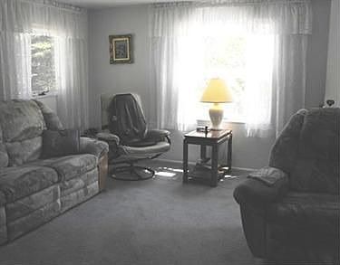 Main hse=LR,Kit,MBR+BR2,1bth,propane gs stv,wndw A/C. Grg=blt-in wrkbnch+shlvng. Apt abv grg=FR(as LR),BR#3,laun/mud rm, kit(ADRM=size)*Frnkln stv both "as is." 2 Furnaces;2 H20htrs; 2 Elec boxes;1 septic sys. Young wndws, elec boxes, roof+siding. Secl'd setting/conven to major access rtes.