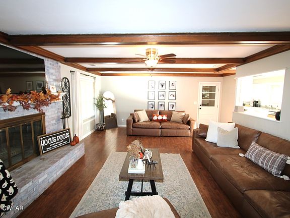 Welcome home to this 3 bedroom, 2 bathroom beautifully updated brick home offering comfortable living space inside and out plus functionality. Inside, you'll find a spacious living room with exposed beams and decorative fireplace, a bright dining area that opens to the deck, and a modern kitchen featuring white cabinetry, updated flooring and stainless steel appliances. The stylishly renovated bathroom with double vanity and gold fixtures is a must see! Step outside to the large corner lot backyard complete with privacy fence (2023), expansive deck perfect for entertaining, oversize garage (21.10x22.6), wired shop (23.8x12.9) with covered parking or storage. Situated in a desirable neighborhood with mature trees and plenty of outdoor space. This property is ideal for anyone seeking room to relax, work on hobbies or enjoy pets. Call today to view this property-Denise Clemmer7314312900/LA Realty 7316869899