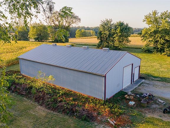 Anstine Vogley Orchard Farm, Rustic Sandstone Ranch Home, 24' x 72' Shop/Multipurpose Building, 50' x 72' Steel Trussed Outbuilding, Situated On 6.38 Acres W/ Country Setting. ABSOLUTE AUCTION, all sells to the highest bidder on location. Live Auction with Online Bidding Available. ONLINE BIDDING BEGINS WEDNESDAY, OCTOBER 8, 2025, at 12:00 PM, and AUCTION LIVE ON-SITE BIDDING WILL BEGIN FRIDAY, OCTOBER 10, 2025, at 12:00 PM. This property offers a country setting with a rustic sandstone ranch home with 1,917 sq. ft. An open concept design shares the oak kitchen w/ appliances, dining room w/ built-in corner curio cabinets and family room with built-in glass door wall cabinet. Large rustic living room w/ stone wood burning fireplace and door to outside. Main bedroom w/ double closets and zoned heat, two other bedrooms w/ closets and a full bath w/ updated walk-in shower & built-in linen closet. Full basement with Burnham Series 3-boiler zoned hot water heat, Rheem 40-gallon hot water tank, 200-amp. electric breakers, water well w/ softener, septic system and built in Vacuflo Vacuum System, plus walkout. Also, several other rooms, including rough in bathroom, laundry room w/ hook ups. Attached two-car garage w/ access to the basement, electric & access to the ceiling rafters. Outside consists of a 24' x 72' shop/multipurpose building featuring an open insulated room w/ wood burner, and beautiful rustic wood, wood beamed ceiling with fans, attached 3-bay garage w/ man door, 200-amp. electric breakers w/ refrigeration condenser for attached large walk-in cooler, large rear open room w/ double bay door, plus man door with a water hydrant w/ sink, attic access to upper large storage area and access to the walk-in cooler and concrete floors throughout. Situated on 6.38 Acres, lays mostly flat w/ tillable land currently planted in corn w/ lease from farmer tenant.Taxes are $1,234.72 per half year. Property open for inspection on Thursday, October 9th from 10:00 am-2:00 pm.