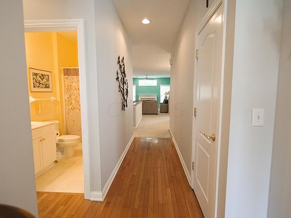 This single family attached home with 2 First Floor Bedrooms, 3 Full Bathrooms, Finished Lower Level, & over 2,200 sqft in the desirable McNaughten Grove Subdivision has it all! You enter into a Foyer with gorgeous hardwood floors leading into a large Eat-In kitchen with white 42' cabinets, NEW SS appliances, and a built in pantry. The Open Floor plan kitchen leads into a Dining Room, a Great Room with a Gas log fireplace, & vaulted ceiling 4 Season Room. The Owner suite has 2 entrances, a large walk-in closet, and a private bath with a double vanity. The Large lower level includes a Rec Room, updated Full Bath, and Loads of Storage. Outside the deck has a retractable awning overlooking the woods and flower beds. Prime location by Broad St, I-270, and hospital.