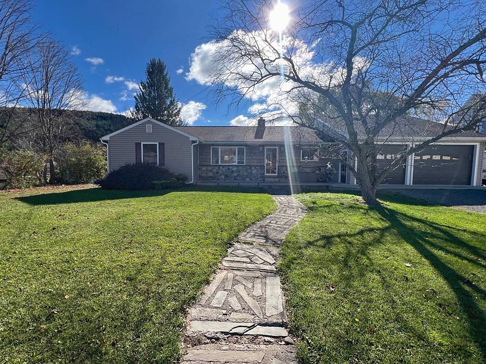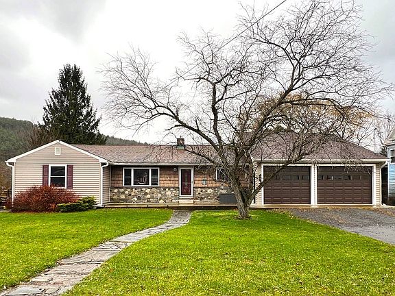 Welcome to this beautifully maintained 2-bedroom, 2-bath home showcasing quality renovations and timeless craftsmanship throughout. Nestled in the heart of Grand Gorge, this property offers the perfect combination of comfort and functionality-ideal for year-round living or a Catskills retreat. Step inside to discover abundant natural light, oak floors, wood blinds, built-in cabinetry, solid mahogany interior doors, and barnwood wainscoting that together create a warm, inviting atmosphere. The spacious living room features a cozy gas fireplace with insert and recessed lighting, while the adjacent dining area provides an ideal setting for gatherings and entertaining. The large U-shaped kitchen is a cook's delight, appointed with Corian quartz countertops, stainless steel appliances-including a brand-new gas range-a generous pantry, and elegant oak flooring. The main bathroom is fully tiled and luxuriously finished with dual vanities and a striking 4' x 6' shower featuring dual shower heads. Both bathrooms have been newly renovated, blending style with everyday convenience. The full-size waterproofed basement, treated by Adirondack Basements and protected by a transferable lifetime guarantee, offers exceptional potential for additional living space. With a 7,500 GPM sump pump (complete with alarm and backup power), French drains, vapor barrier, and dehumidifier, the area remains dry, clean, and ready to finish to your needs-whether as extra bedrooms, a home gym, or a recreation space. A coal stove provides efficient heating, and French doors fill the area with natural light. Car enthusiasts and hobbyists will appreciate the impressive 25' x 36' garage, complete with insulated 10' and 12' remote doors, cathedral ceiling, pull-down stairs for added storage, 200-amp service, abundant outlets, and ample room for both a workshop and oversized vehicles. Outdoor living is equally appealing, featuring a newly poured front patio, a level lot, and a fully fenced backyard with gated access. A covered porch with hot tub offers a relaxing retreat, while a 10' x 14' shed with roll-up door and a 24' x 30' garden area ready for planting enhance the property's functionality. Ideally located just minutes from miles of snowmobile trails and within 30 minutes of four major ski resorts, this home combines rural charm with modern convenience. With central air, public water and sewer, and exceptional craftsmanship throughout, this property is truly move-in ready. Don't miss the opportunity to own this beautifully updated Catskills home-schedule your private tour today!