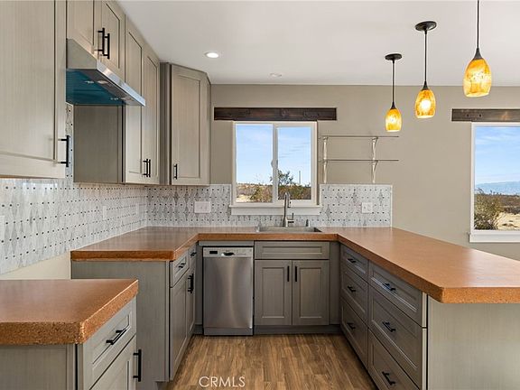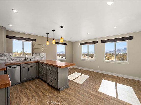 NEW BUILD HOME!!! This home was recently finished as a custom-built desert oasis! Located right outside the main park entrance for Joshua Tree National Park. Convenient location for visiting the National Park while also experiencing a secluded, private desert landscape. This home features STUNNING VIEWS in every direction and the most amazing sunsets on earth, the back porch is positioned perfectly to enjoy these views. You will also find many custom features, like the concrete countertops in the kitchen and beautiful live edge wood countertops and accents in the bathrooms. The property sits on 2.7 acres of flat usable land to plan the most amazing entertainment space, with potential for pool, firepit, games, horses, ATV's etc... This home is perfectly set up for Air BnB for Joshua Tree National Park, the #2 rated national park in the USA with 3.25 million visitors per year, or can be enjoyed as a second home or primary residence. Best access to the property is from Wesley Rd off Aberdeen Dr.