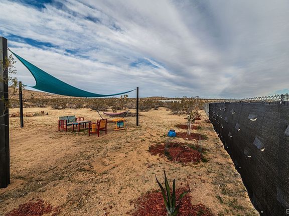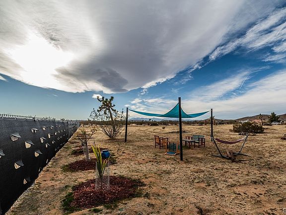 Enjoy those clear, star-lit nights in this completely fenced off 2.43 acres of land!! Build your dream home, or camp it out!! There's a water meter with 4 spigots throughout, a rammed earth bridge over the wash located toward the rear of the property, rammed earth pillars and entrance gate. This beautiful piece of heaven is already set with a quaint triangle shade, patio set and bonfire area ready for your enjoyment!! Don't miss out on this opportunity located approximately 20 minutes from the Joshua Tree National Park where you can enjoy various trails, hikes, rock climbing, bouldering, and many various adventures!!