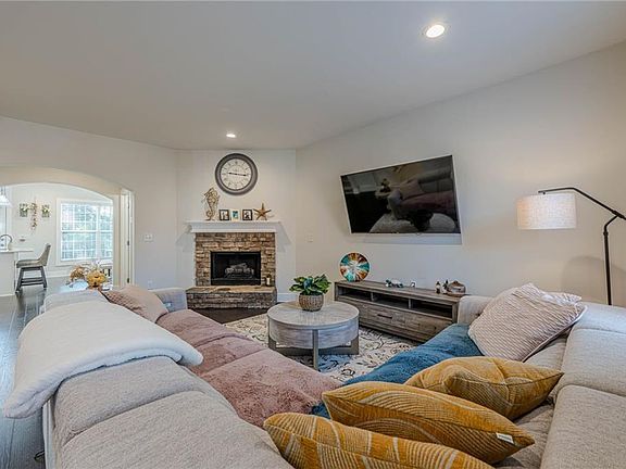 Located in a gated community, this townhome was rebuilt in 2019, giving it newer construction and modern upgrades not typically found in the original 2006 residences. The main level features an open-concept layout with hardwood flooring, a brick fireplace, and abundant natural light. The kitchen is equipped with white cabinetry, quartz counters, subway tile backsplash, an island with seating, and stainless steel appliances including a gas range, refrigerator, microwave, and dishwasher. Just off the kitchen, the dining area opens to a back deck, ideal for entertaining or relaxing. A half bath is conveniently located on this level. Upstairs, the primary suite offers a walk-in closet, dual vanities, soaking tub, and walk-in shower. Two additional bedrooms are well-sized and served by a full hall bath. A laundry closet with washer and dryer is also located in the upstairs hall for added convenience. The terrace level includes a bedroom, a full bath, hardwood flooring, and access to a private patio. The two-car garage provides parking along with a small driveway for extra convenience. The furniture may remain for an additional monthly cost. Community amenities include a pool, tennis courts, and a playground. The location offers easy access to major shopping and dining at Sugarloaf Mills and The Forum in Peachtree Corners, as well as local conveniences in Duluth. Outdoor enthusiasts will enjoy nearby parks and trails, and commuters will appreciate quick connections to State Route 141 and other major roadways.