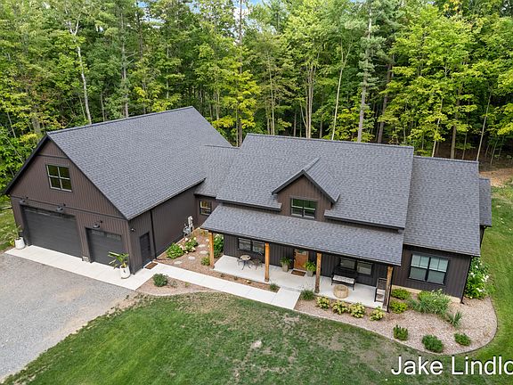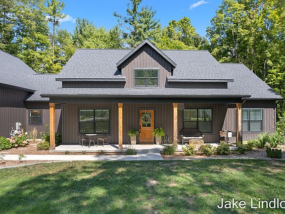 Welcome to your private oasis just 5 minutes from downtown Rockford and in an ideal location for commuting around West Michigan. This stunning home on just over 4 acres was custom built in 2023 with top of the line mechanicals and room for everything you may need. This grade level property is spacious and cozy with a beautiful fireplace in the open and sun-lit great room. Enjoy your coffee on either front covered or back, screened in porch with ultimate privacy. Need a 5th bedroom, exercise room or office space? There's an open pallet bonus room that offers an additional 672 square feet. The garage is every business owners dream with 12' ceilings and double deep parking. A potential 4th bathroom has also been rough plumbed in the garage. Stegmen Creek runs through the property and is a designated trout stream. The acreage also offers excellent hunting with deer and turkeys perusing daily. An established garden rounds out this dream of a home that's ready to move into today