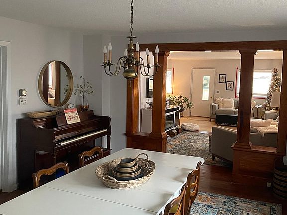 This newly updated home is on a large 3 parcels with TWO large double car garages. One with water, heat and work bench deeper than other one. Large lot to north of the house. All surfaces other than 1 stairway updated. Metal siding, new rain gutters with covers. Beautiful mature trees landscaping. New bathroom tiles, walls/floors. Kitchen new surround tile and flooring.