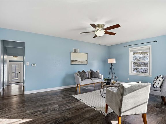 Cute 1½-story home in an established Kalona neighborhood, just steps from the downtown district, YMCA, and school. A cozy living room greets you as you enter through the front door, featuring newer LVP flooring and newer baseboards that extend through the kitchen and other areas of the home. The spacious eat-in kitchen offers abundant cabinet storage, a pantry, and a double oven. Appliances updated between 2020–2025 include the dishwasher, garbage disposal, refrigerator, and range hood. Enjoy the bright four-seasons sunroom with vaulted ceiling, skylights, and newer French doors. The main level includes a primary bedroom with original hardwood floors and a full bath with knotty pine walls and a hot tub. Upstairs you’ll find two additional bedrooms and a second bathroom. The lower level features a large mudroom with a soaking sink, laundry area with washer and dryer staying, and a spacious family room. Enjoy sitting on the recently re-screened porch and soaking in the fall days. One newer door and updated openers on the 2-car detached garage. Nice usable yard enhanced by mature trees and a cozy firepit area. The hot tub and the lower level gas fireplace are being sold in as-is condition. Home has been mitigated for radon.