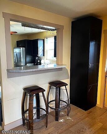 This two bedroom two bath home has the perfect floorplan for easy living and entertaining. Your living room is spacious with plenty of natural light, built in bookcases, beautiful oak flooring and a cute Juliet balcony just off the living room that offers a view of the river. The kitchen has everything you need with space for more than one chef; all stainless-steel appliances, Corian counter tops with a subway tile backsplash, plenty of cabinetry, and a café style eating space with a coffee/tea bar area complete with a bay window view. Just off your kitchen you have a full bathroom and a bedroom which is currently being used as an office with a screened in covered porch that overlooks your fenced in backyard. Upstairs and behind French doors is your private primary with its own ensuite, a large walk-in closet and even space for an office, reading or craft area. The laundry area with washer and dryer which convey with the house is just outside the primary's entrance. The oversized two car garage also has a separate area perfect for a potential workshop or as an extra storage space. This home also offers a Rinnai Tankless hot water heater, a new main floor mini split unit 2023, newer metal roof, transferrable flood insurance at $633 annually, NO HOA, municipal sewer and water and it s approximately 5-10 minutes to shopping and downtown New Bern.