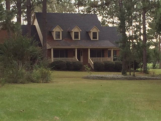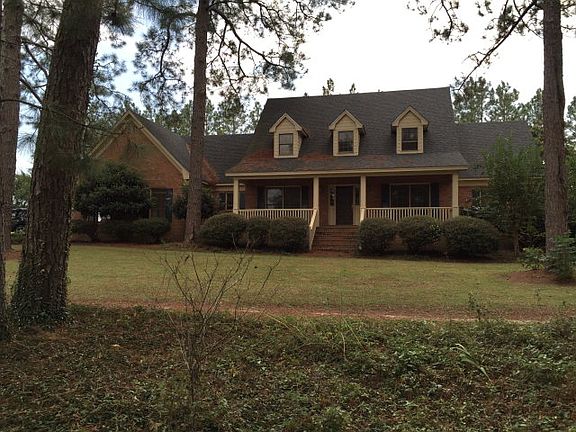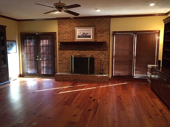 This 3 bedroom 3.5 bath brick home is nestled among the trees overlooking a pond on 5.89 acres. Home features a formal dining room with wood floors & a living room that can be used as an office or playroom. Large family room with fireplace, wood floors, built in cabinets with lighting, built in gun case & shelving. Kitchen with tiled floors, stained cabinets, & a breakfast area with bay window. Half bath off of kitchen & laundry room. Laundry room with utility sink & cabinets. Master bedroom is downstairs with two regular closets & a walk-in closet. Carpet replaced in master bedroom -Sept 2015. Master bath has tiled floors, double sinks, & cultured marble. Two bedrooms and two private bath upstairs and each bedroom has a bonus room off of it. Alarm system w/Acom, Large deck off of family room, Roof-2013, 2- CH&A units, & storage under garage.
