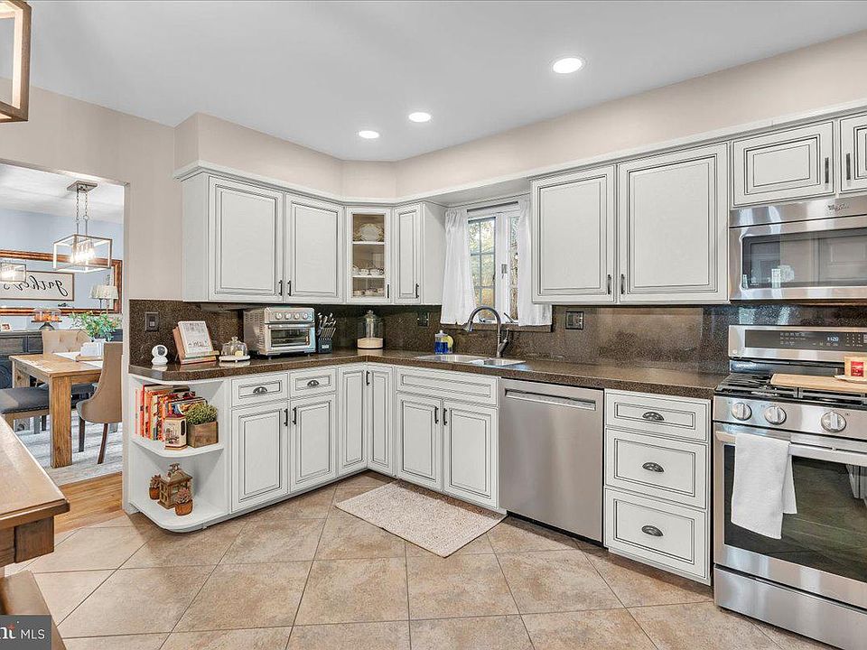 BACK TO ACTIVE DUE TO JOB LOSS ON THE BUYER SIDE. OPEN HOUSE 11/24 at 1:00-3:00. Multiple offers first round. Discover the perfect blend of elegance and comfort in this stunning suburban home, located in a vibrant community. As you enter, you'll be greeted by a sense of quality that permeates throughout. The front foyer features beautiful French doors that lead to a spacious living room, while an additional set of French doors opens to the dining room, which boasts Anderson sliding glass doors that lead to a generously sized Trex deck—ideal for outdoor gatherings, entertaining and relaxing. The living and dining areas are adorned with rich hardwood floors, creating a warm and inviting ambiance. The updated eat-in kitchen is a chef’s dream, showcasing newly updated cabinets, newer stainless steel appliances (all replaced since the seller moved in, except for the dryer), a stylish ceramic tile floor, a double pantry, and sleek granite countertops. The main level also includes a convenient powder room and a spacious laundry/mudroom with its own entrance and ample storage. Upstairs, you'll find five nicely sized bedrooms, including a luxurious main suite with cathedral ceilings, a generous walk-in closet, an additional closet, and an attached full bathroom. One of the full bathrooms upstairs has been newly renovated, ensuring modern comfort for your family. Storage is plentiful with a two-car garage and a large backyard shed as well as a hidden space upstairs. The home is beautifully surrounded by mature landscaping, enhancing its curb appeal. Additional features include mostly Anderson windows throughout, a newer HVAC system, a newer hot water heater, and a newer roof, meaning this home is truly move-in ready. Meticulously maintained and conveniently located within walking distance to elementary, junior high, and senior high schools, this exceptional property is one you’ll be proud to call home. Don’t miss your opportunity to live in this beautiful oasis! The playset out in the backyard is negotiable.