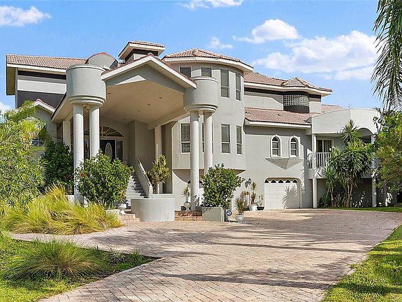 MOTIVATED SELLERS!!!! READY TO SELL THIS WEEK!!!! BRING YOUR BUYERS...BRING YOUR INVESTORS!!!! JUST PAINTED INTERIOR & EXTERIOR!!! WELCOME TO PARADISE says this high and dry majestic, elevated, custom Matta masterpiece! This beauty is located in the desired Tierra Verde on the popular Columbus Drive. This home boasts 5155 Sq Ft of total living area plus another 6000 Sq Ft of exterior enjoyment. Buyers will love the size of the 2600 sq ft of lush exterior space with excellent views of the Gulf! The Wow Garage has room for 10 CARS or all the toys, golf carts, work shop and storage area of 3424 sq ft. Upon arriving to the grand portico you will see gorgeous pavers covering 3000 sq ft with plenty of room for parking and entertaining. Once you enter the stately glass doors you will notice the soaring ceilings w open great room. There is lots of natural light throughout along with water views. The large Family Room is perfect for entertaining and features a marble clad fireplace for ambiance. The large Dining Room is just past the stunning kitchen perfect for a chef. 2 enormous islands, one for bar seating and one for cooking. More features include newer appliances, granite countertops, newer fixtures and lighting along with dining area that steps out to the covered deck for eating alfresco! The kitchen also overlooks a bright and open family room which extends the entertaining area or can be the quiet space to relax. The first floor has 3 nice sized ensuite bedrooms that have their own outdoor space to make your guests feel at home. The large laundry is also on the main level for ease. There is also a cozy loft area that has a view of the great room. There is a large 700 sq ft office that can easily be a 5th bedroom or an awesome game room. It has water so could be a wet bar, small kitchen for additional family. The owners retreat offers privacy and luxury along with a giant walk in closet. Buyers will love the walkout to the private patio and enjoy the Sunset views over the Gulf. The bath is exquisite with a palacios sunken jacuzzi tub, spacious walk in shower and double vanities. The garage is expansive and offers so much space for cars and toys it will be the envy of all your friends in this perfect man cave garage. This 1/3 acre lot is located on the West side but is still off the water. It has plenty of space to build the pool/backyard of your dreams. The new owners will love living in Tierra Verde with the nearby marina, restaurants, shops and quiet, peaceful, tropical amenities that is has to offer. It is close to Fort De Soto State Park and minutes to all of the beaches in the area. It is 15 minutes to downtown St Pete and everything it has to offer including the Pier, Museums, Restaurants, Bars & Parks along the waterfront. This home is only 30 minutes from the airports and quick to the Skyway Bridge. Welcome to Paradise with this absolute beauty and best of all buyers will Love the New Price!