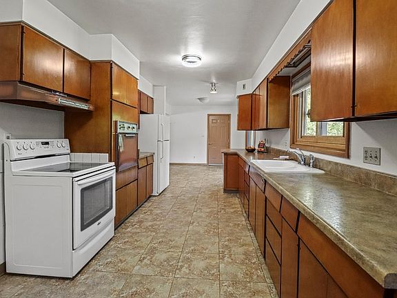 Here is a fantastic opportunity to own a ranch style home with an attached 2-car garage on a rare double city lot. This spacious 3-bedroom, 2-bath residence is located close to schools, the Hodag Dome, the YMCA, and downtown Rhinelander. A welcoming floor plan features a Lannon stone fireplace (virtually staged in photos) framed by built-in bookshelves in a generous sized living room with a large picture window. The kitchen is open and well lit with a view to the paver patio, ideal for BBQ-ing, and a generous sized back yard. There are a total of three bedrooms, the primary bedroom having two closets and its own bath for added comfort. An unfinished basement—perfect for customizing to your needs, you'll find a forced air furnace and laundry area. The garage has a solid wooded ramp for ease of access into the home. This home offers both convenience and charm. With just a few finishing touches, it could be your dream space. All appliances are included. This home has central A/C!