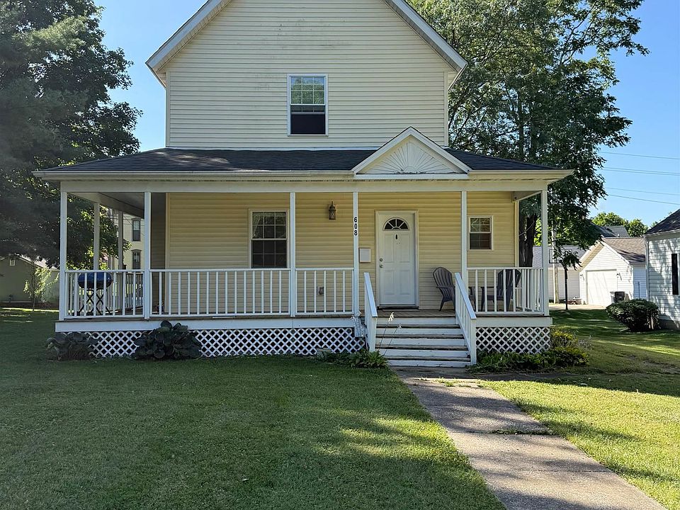 Welcome to this charming home featuring a full wrap-around porch in a peaceful neighborhood perfect for enjoying your morning coffee or relaxing evenings. Inside, you’ll be greeted by a beautiful open staircase, a cozy sunroom, and a large dining room ideal for gatherings. The spacious kitchen provides plenty of room for cooking and entertaining, with laundry and a convenient ½ bath located on the main level. Upstairs, you’ll find two comfortable bedrooms and a full bath. With new central air and timeless character throughout, this home is truly move-in ready and waiting for its new owners!