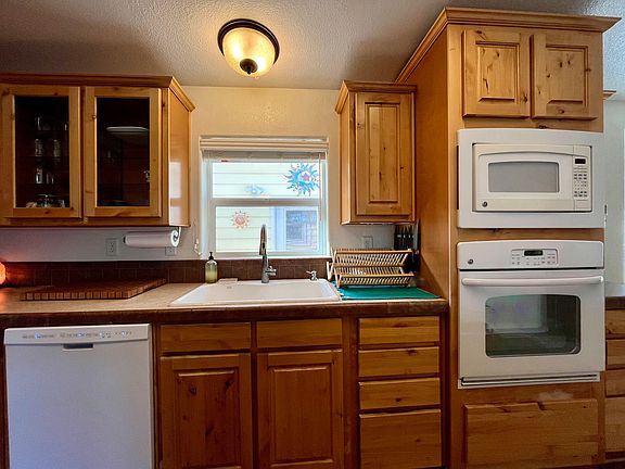 This is a well-kept 3-bedroom, 2-bath manufactured home located near downtown Enterprise. This property features a spacious floor plan, propane fireplace, and heat pump with air conditioning. Master bathroom with large soaking tub and separate shower. Second bathroom with full bathtub and shower. Peekaboo mountain views from the back deck with a retractable shade awning. There is a fenced front patio with prairie and sunset views. The highlight of the property is a large detached heated shop/playroom/workroom and garage, complete with its own bathroom and oversized sink. One year lease. Last month's rent due at signing. Two pets total allowed. No cats. Renter is responsible for all utilities. Renter is responsible for basic property upkeep including mowing, weeding and watering the property to maintain a tidy appearance. No smoking anywhere on the property. Reference required.