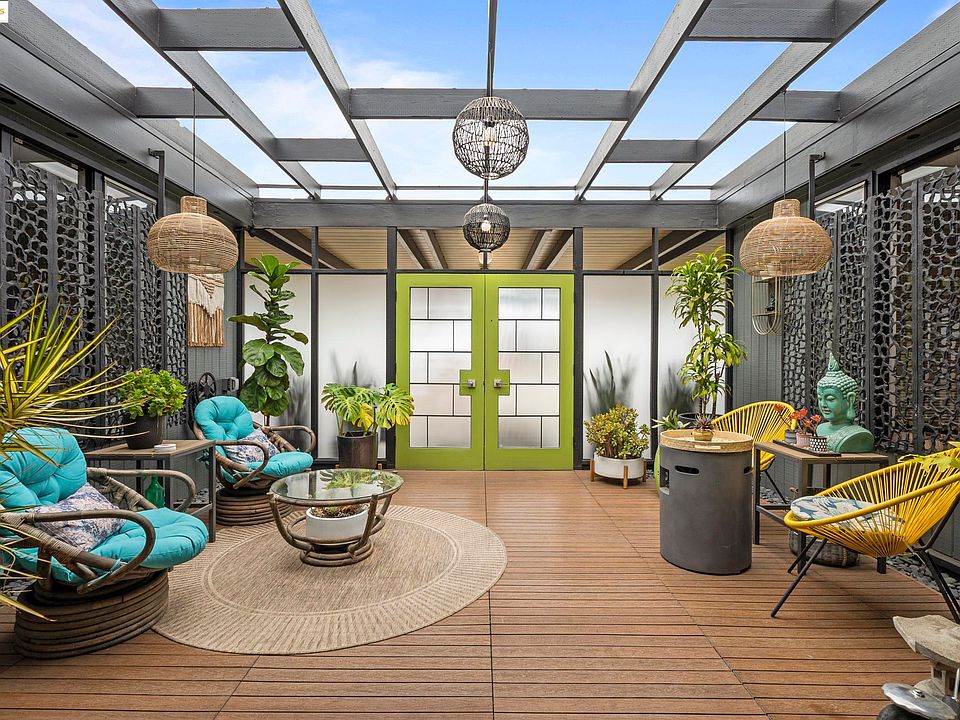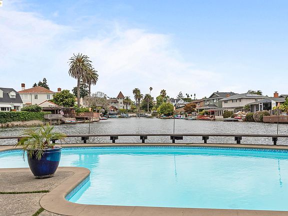 Architecturally significant Mid-Century Modern lagoon home offering stylish single-level living and a bright open floor plan with vaulted ceilings. Enjoy two primary suites, hardwood floors, and a double-sided fireplace that adds warmth and character. Walls of glass fill the home with natural light and seamlessly connect indoor and outdoor spaces. Step outside to a private backyard oasis with a sparkling pool and private lagoon. Ideally located near Crown Beach and convenient South Shore Shopping Center including Trader Joe’s and Trabocco. Enjoy walkable and bike-friendly living just a short ride or walk to Park Street’s vibrant shops and restaurants, the Alameda Theatre, and the Public Library. Minutes from the Alameda Ferry Terminals for stress-free San Francisco access. A perfect blend of Mid-Century design, comfort, and location.